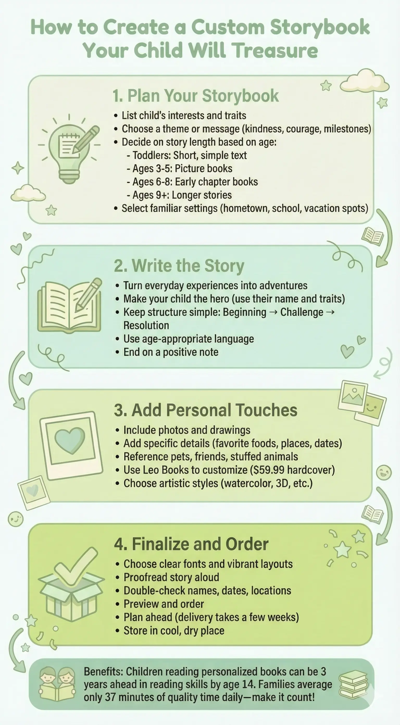 Creating a custom storybook for your child isn’t just about crafting a fun project - it’s about creating lasting memories and strengthening your bond as a family. By personalizing the story, you’re giving your child a keepsake that’s both meaningful and unforgettable.