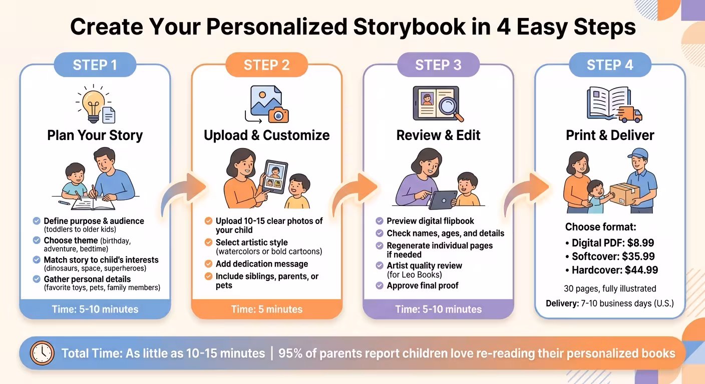 Thanks to modern platforms, creating a personalized storybook has never been easier - it can take as little as 5 minutes to bring your story to life, combining advanced technology with sleek, user-friendly design [1].